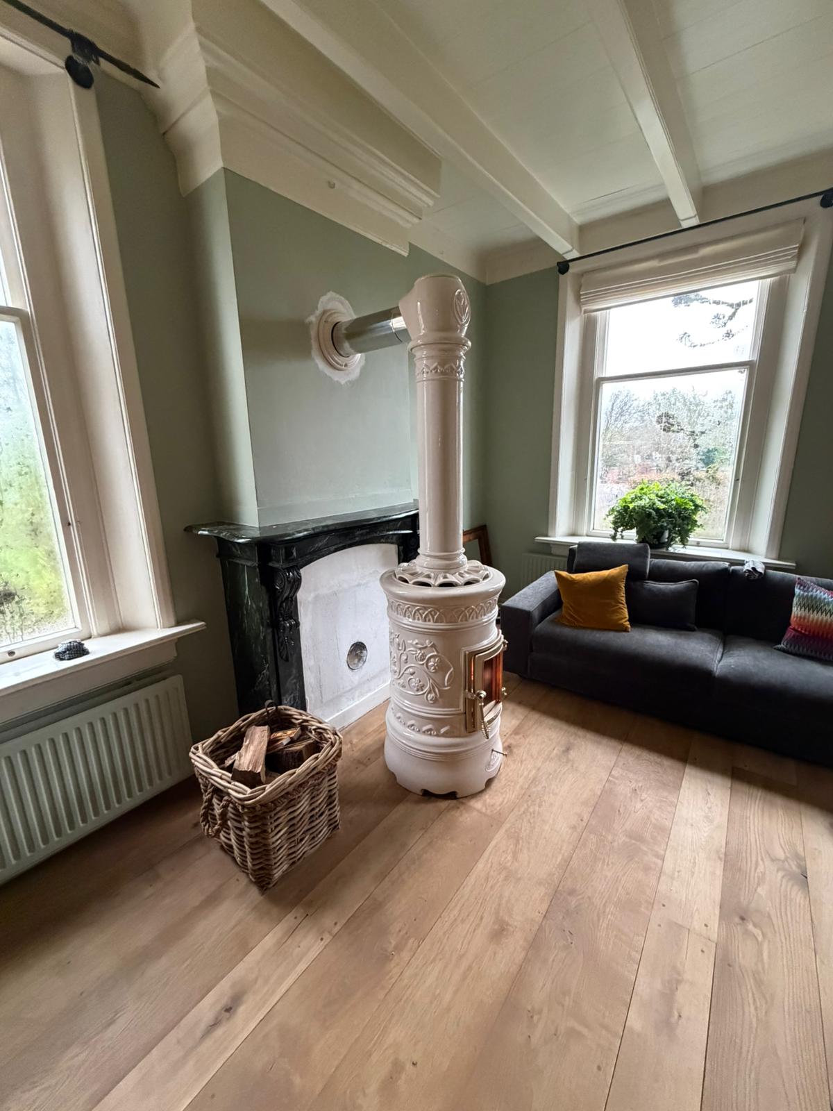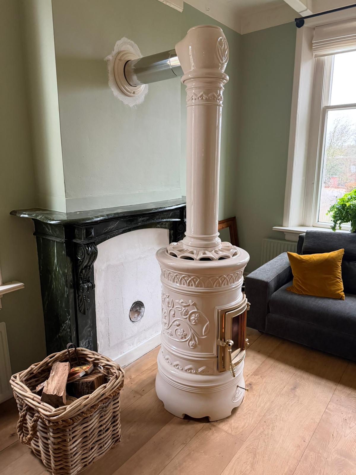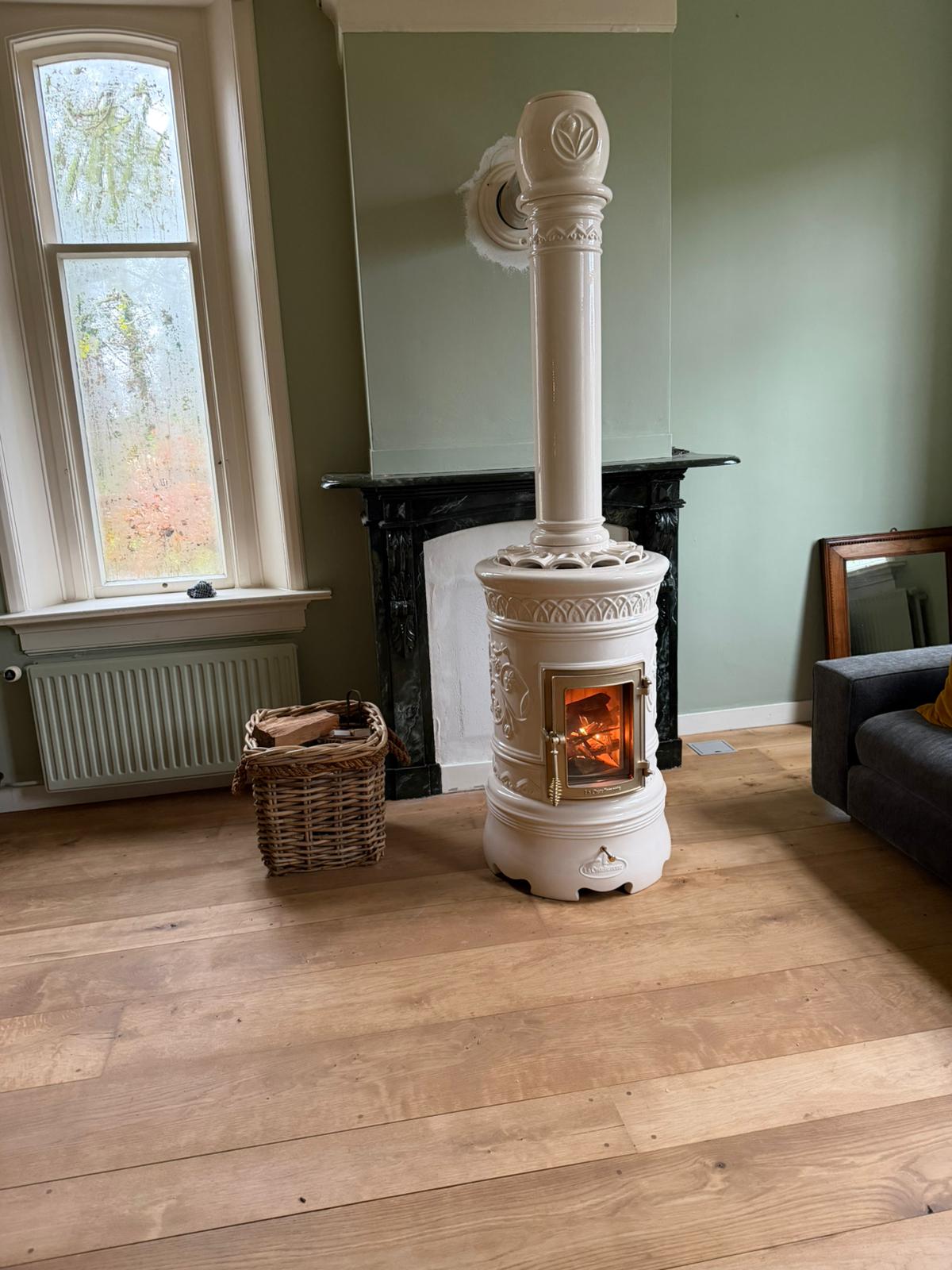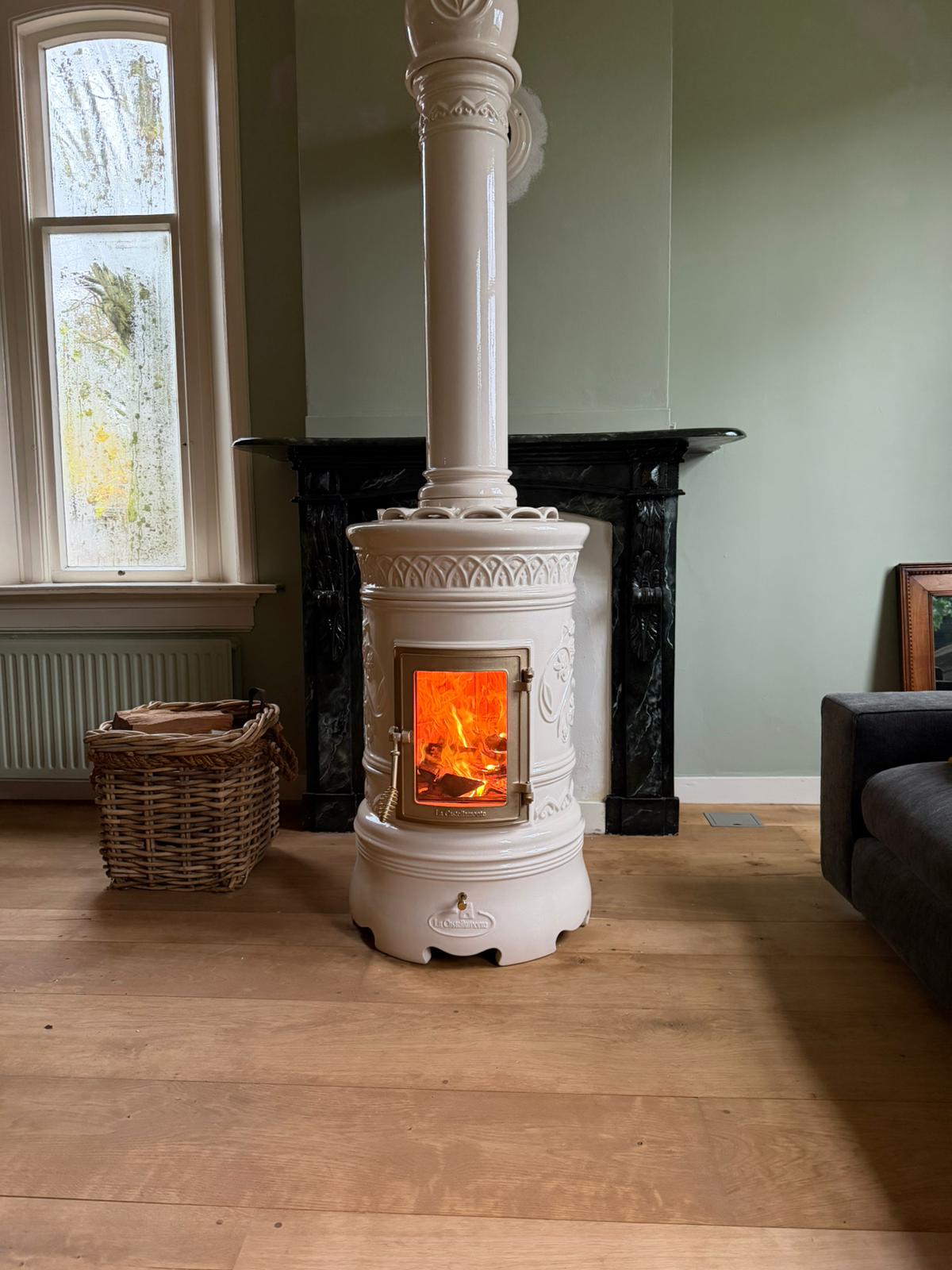 Houtkachel uitgevoerd in de kleur Shiny Crema
